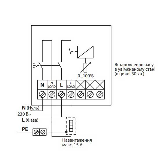 Діапазон регулювання (шкала таймера) - 0 ÷ 100%, (повний цикл - 30 хв.)